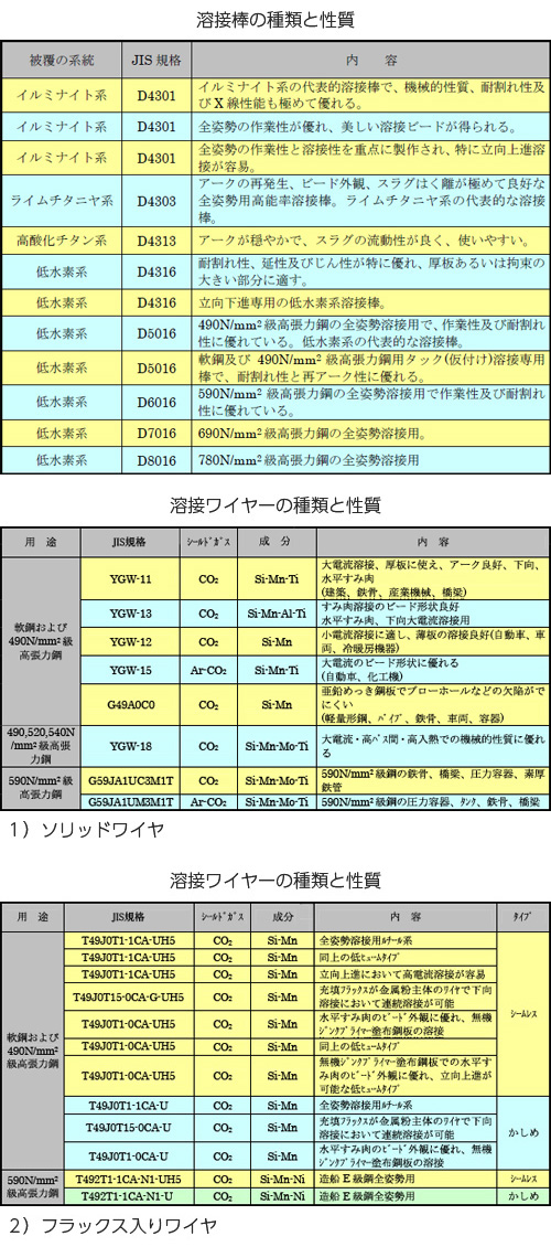 高圧ガス・溶接材料 各種溶接材料 溶接材料としては、溶接棒や溶接ワイヤなどがあります。 高圧ガスと同様に、被溶接材料の種類や成分及び溶接環境などにより適切な溶接材料を選択する必要があります。お客様におかれましては、非常に専門性の高い分野でありますので、どの溶接材料を使用したら良いか迷われることかと思います。そのような時には、是非、ご相談下さい。お客様にとって最適と思われる溶接材料をご提案致します。 お問い合わせはこちら